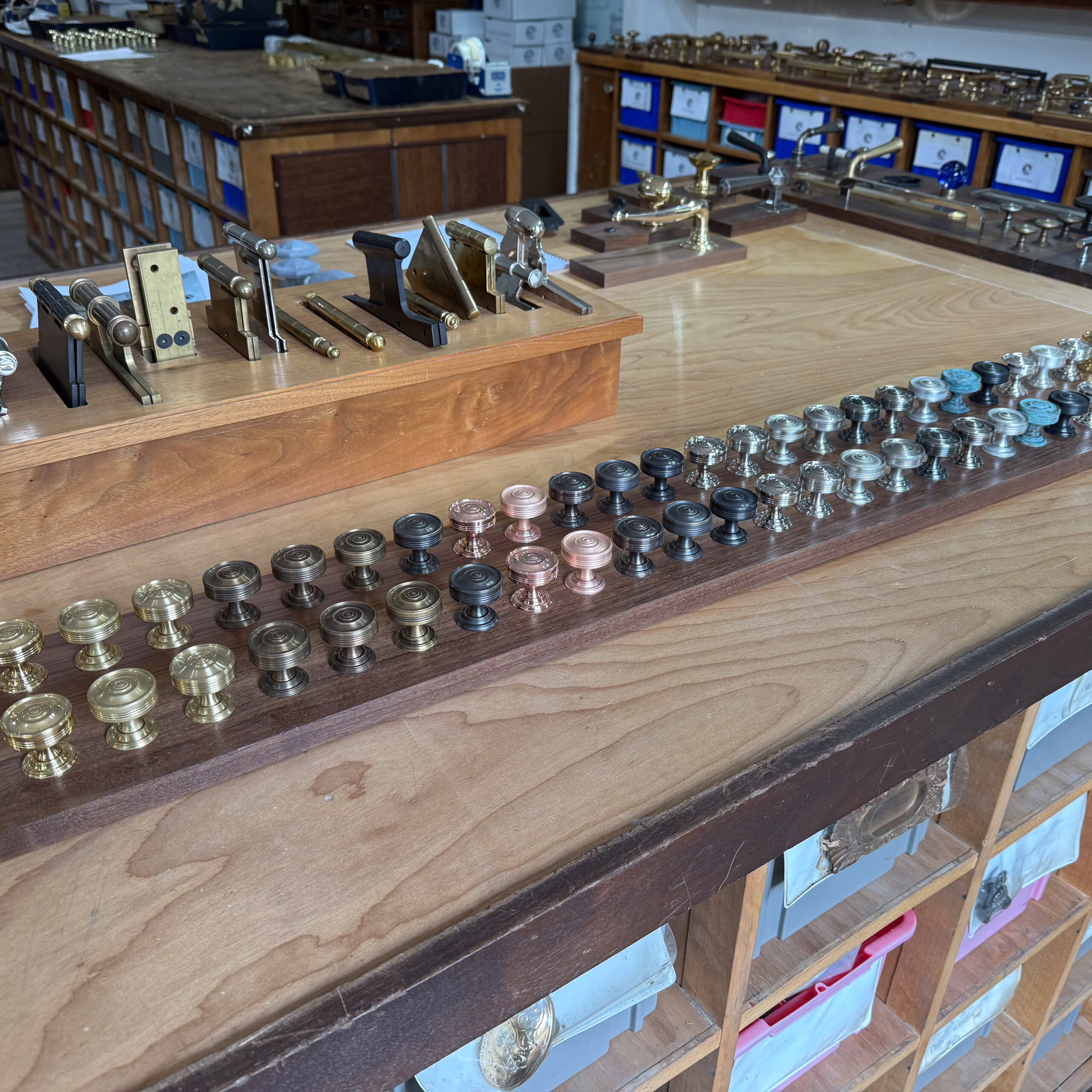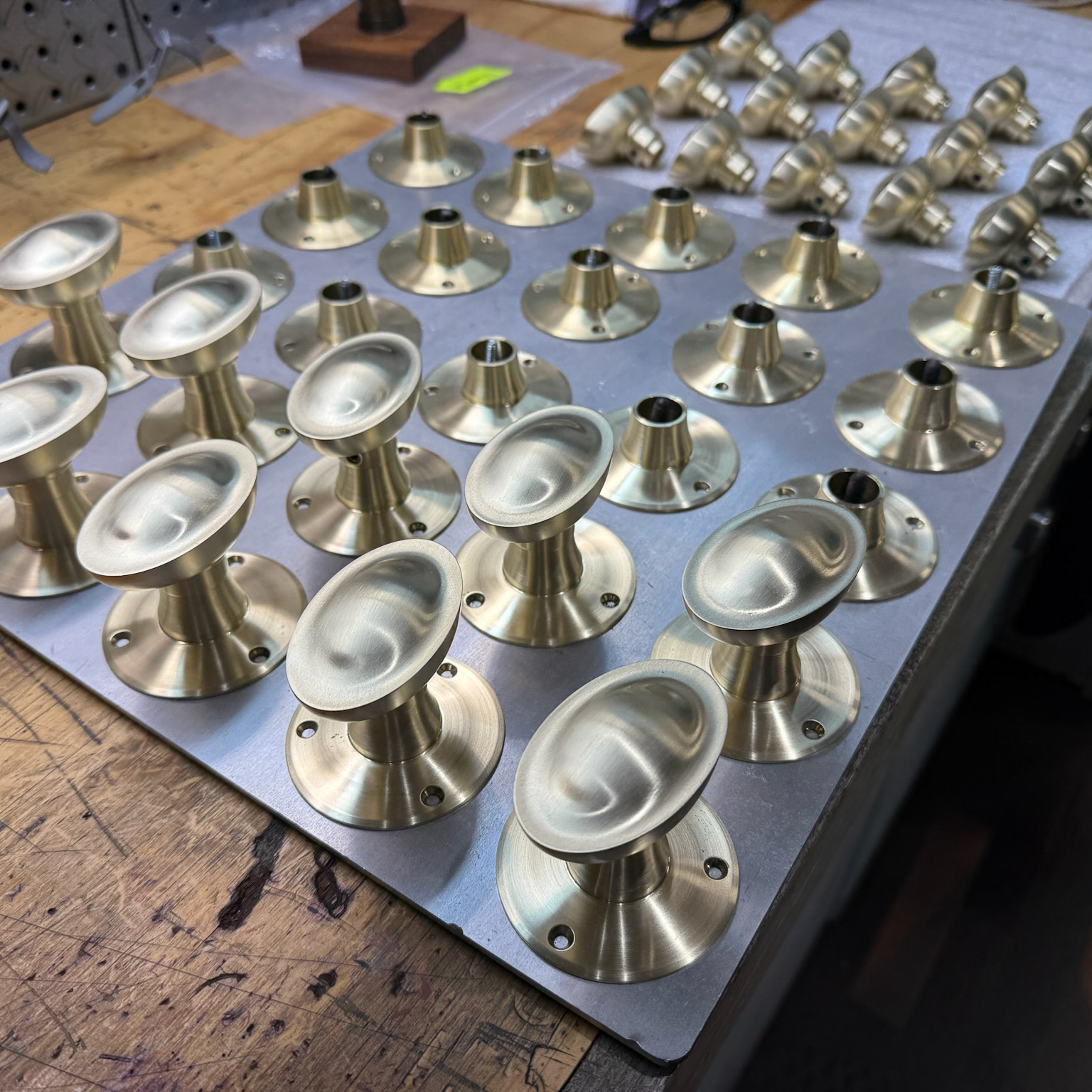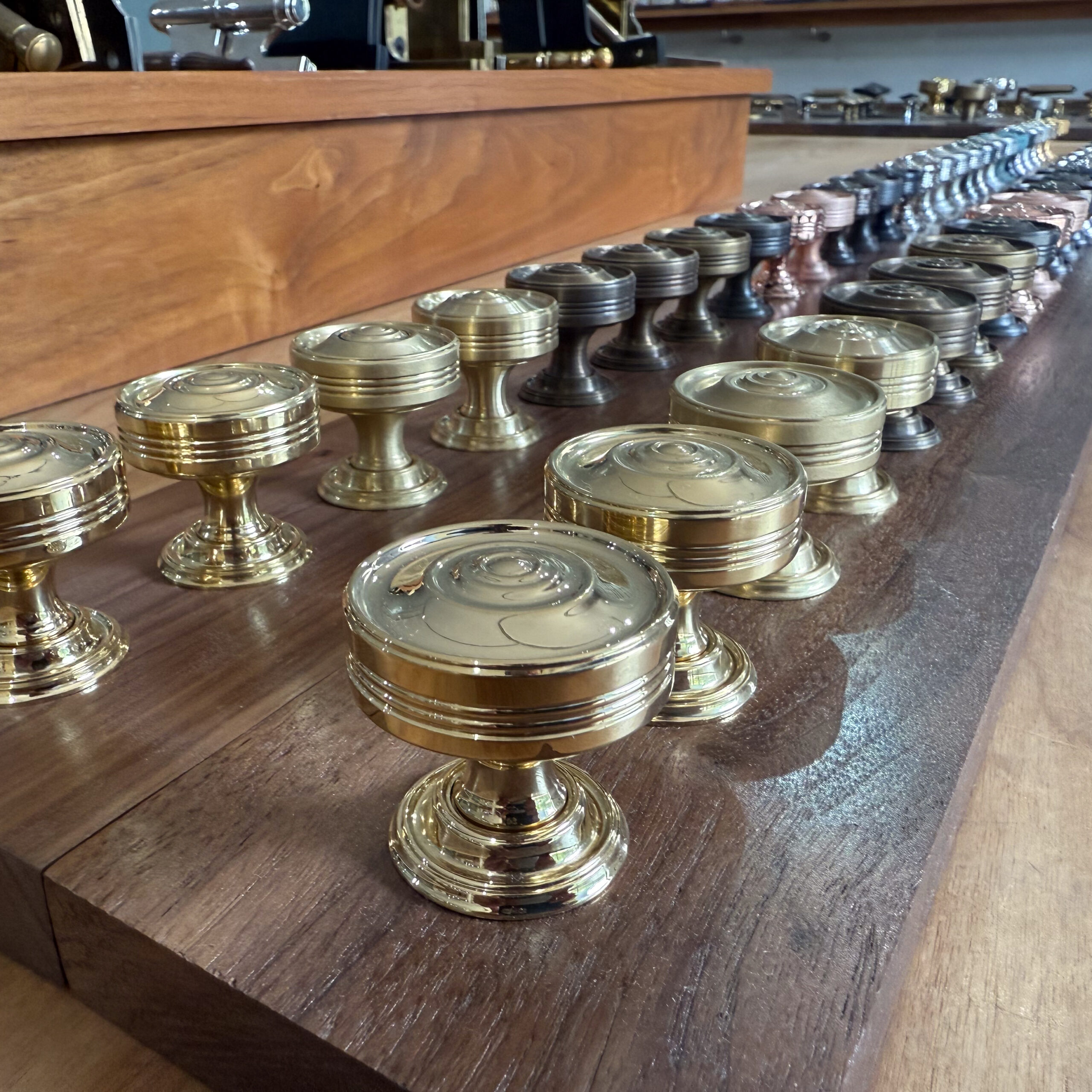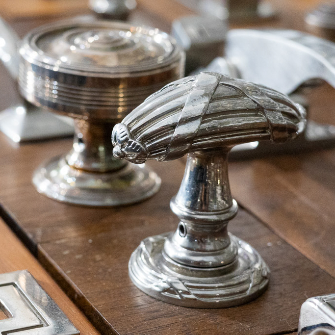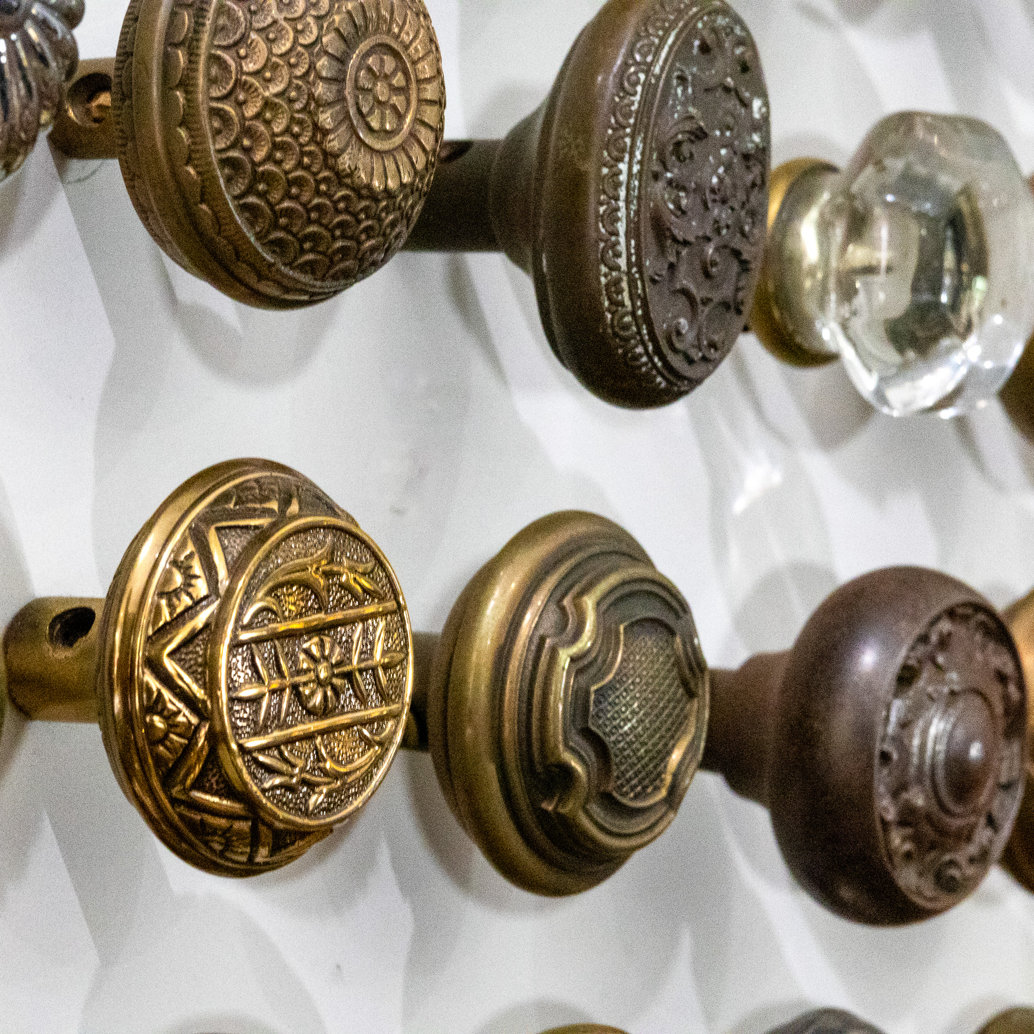 Check out this stunning collection of historic hardware! Some of our fun projects are saving the existing hardware and matching it with new custom fabrications. The inside of this flush pull included a fine knurl detail.