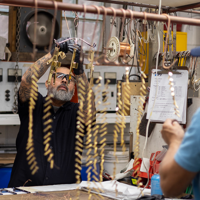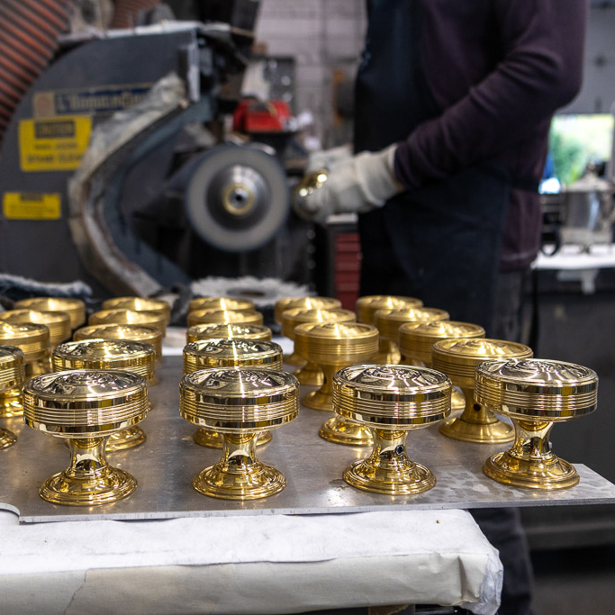 These Fulton knobs are being polished before they are sent to their new home. James is a master at his craft!