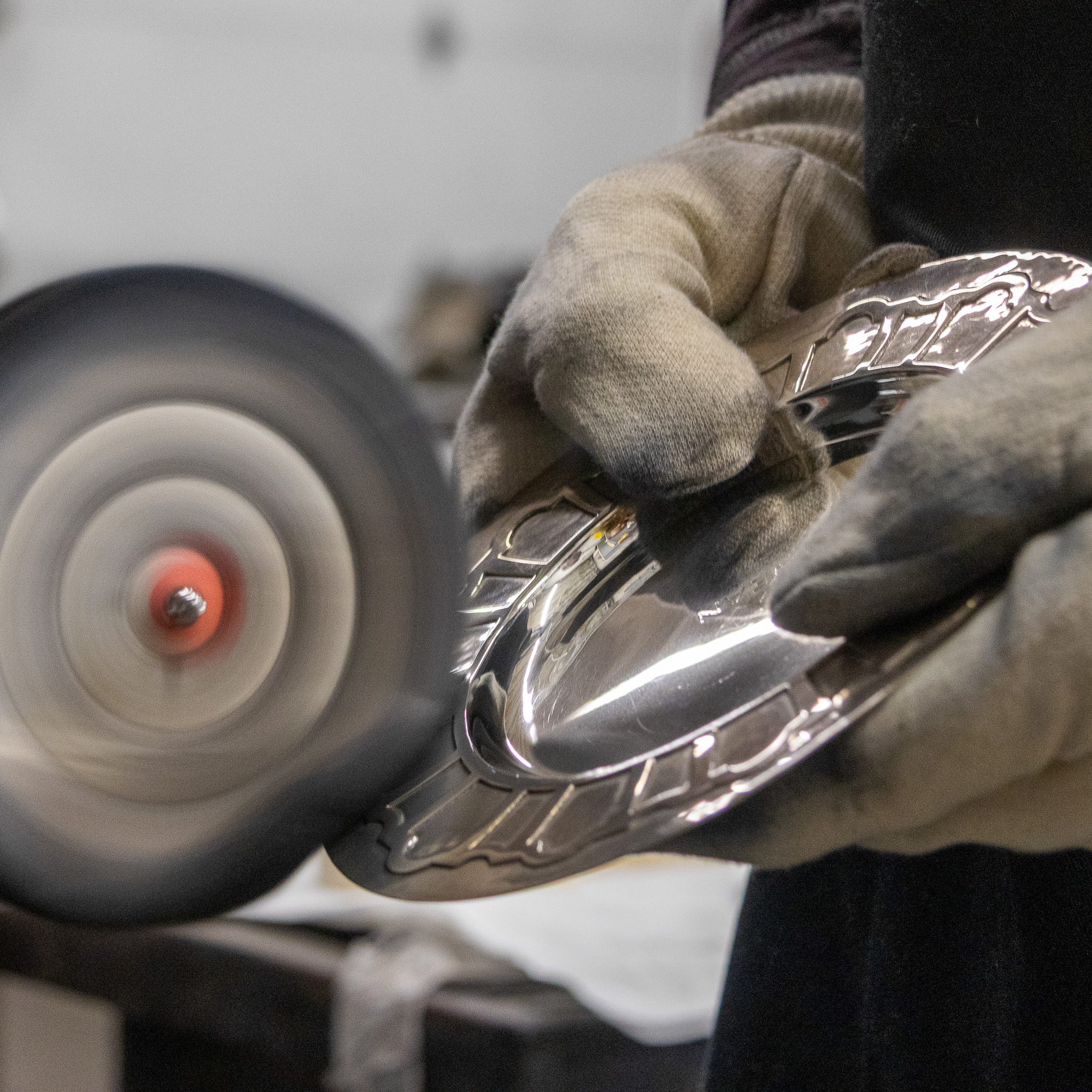 Our silver polisher carefully working on an antique silver plate to be used in a wedding.