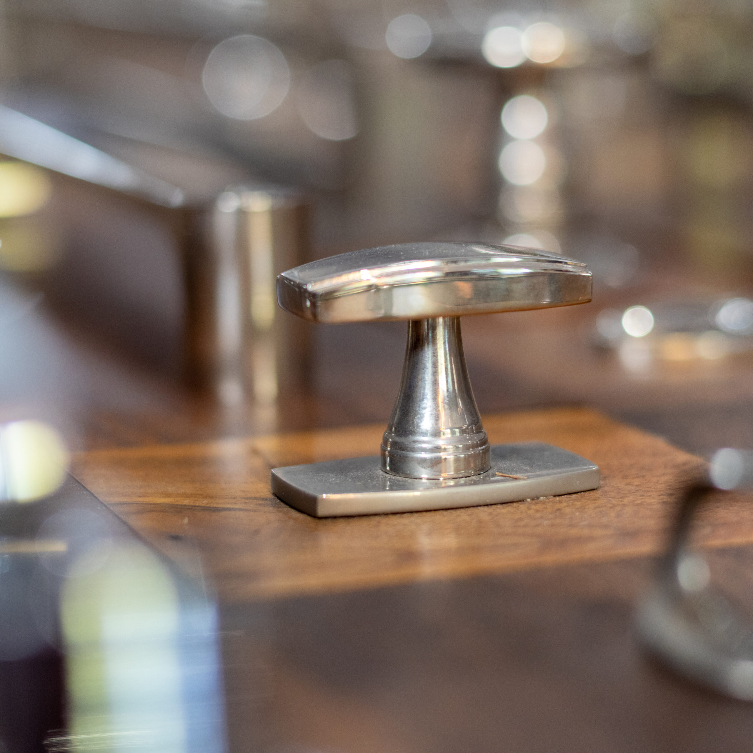 Inside the nickel hinge—clean lines, smooth movement, no shortcuts.