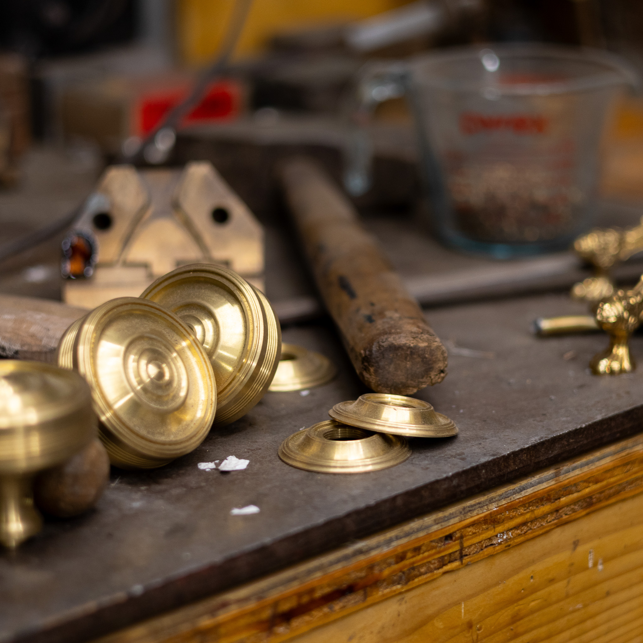 These levers have been hand-hammered and are ready for the final plating and finishing processes.
